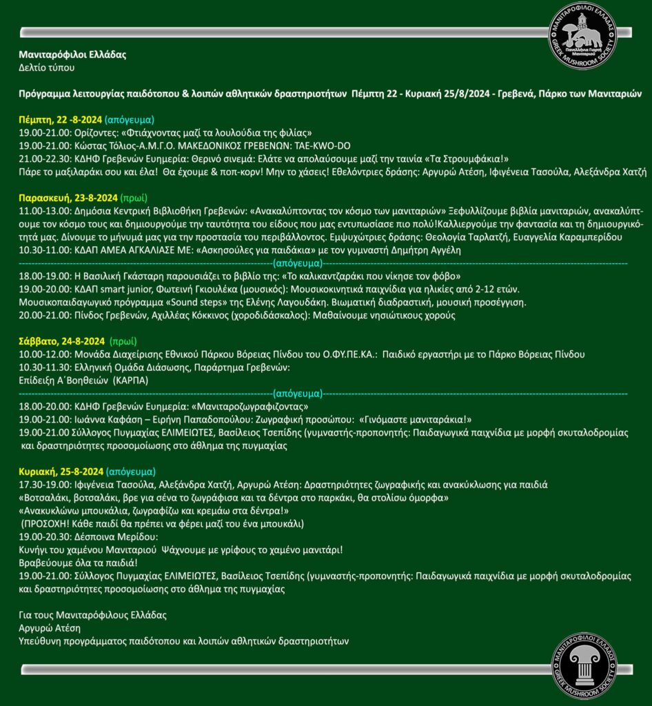 Πέμπτη 22 έως Κυριακή 25 Αυγούστου 2024 – Γρεβενά, Πάρκο των Μανιταριών