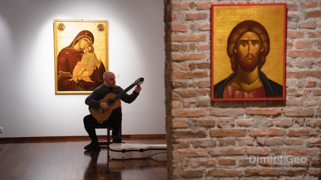 - Στο τρίτο μέρος στο χώρο της έκθεσης, ανάμεσα στα έργα του πατέρα του, ο γιός του αγιογράφου, Νικόλαος Μπαλογιάννης έκλεισε μουσικά τη βραδιά, με ένα μοναδικό ρεσιτάλ κιθάρας, ενώ η κόρη του αγιογράφου, Ευαγγελία Μπαλογιάννη και οι επισκέπτες-θεατές στο τέλος τραγούδησαν παρέα, δημιουργώντας ένα βαθύ αίσθημα συγκίνησης και ευφορίας!