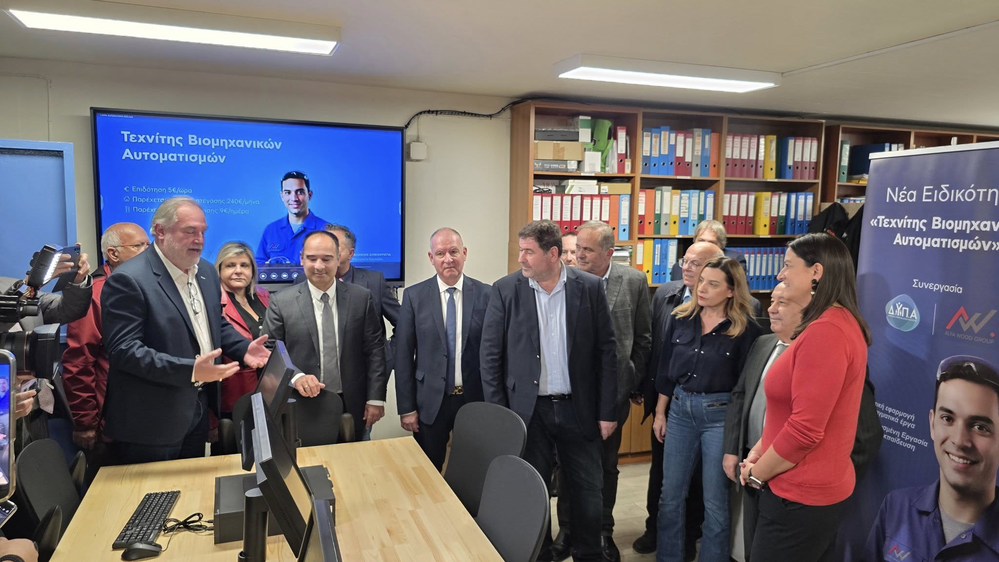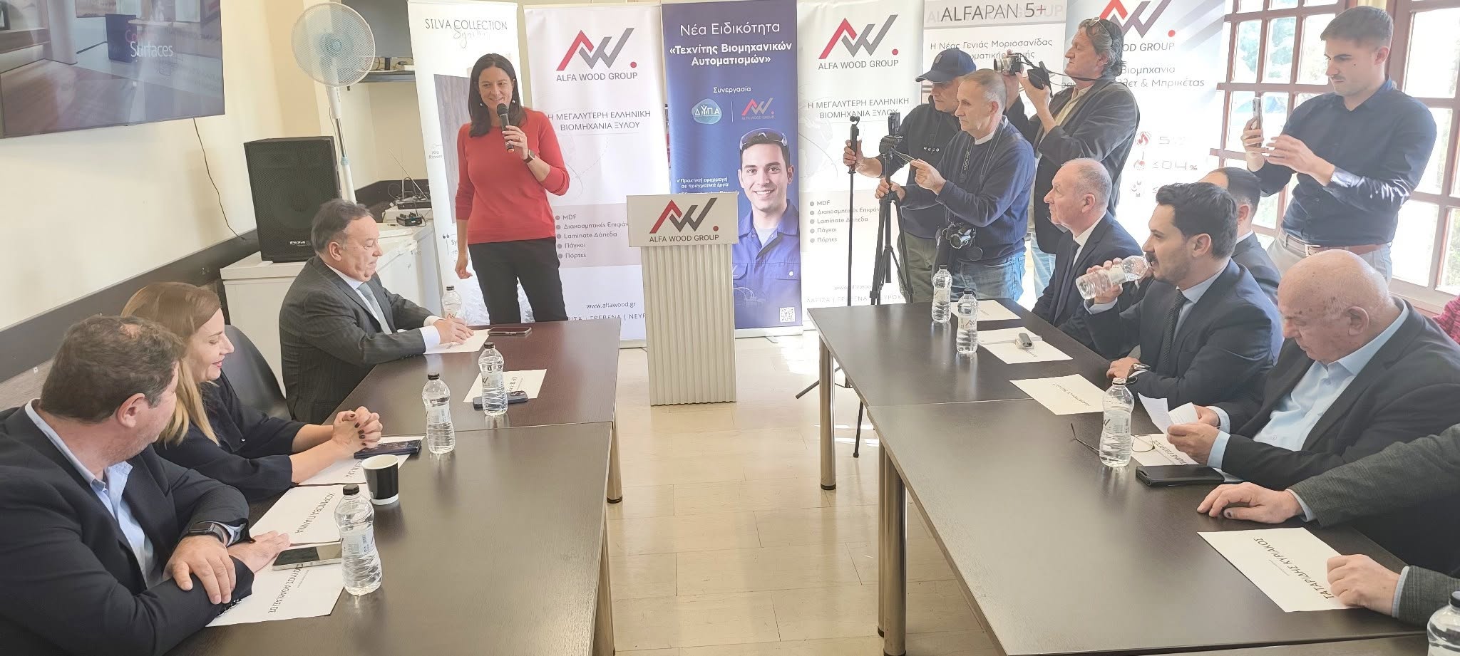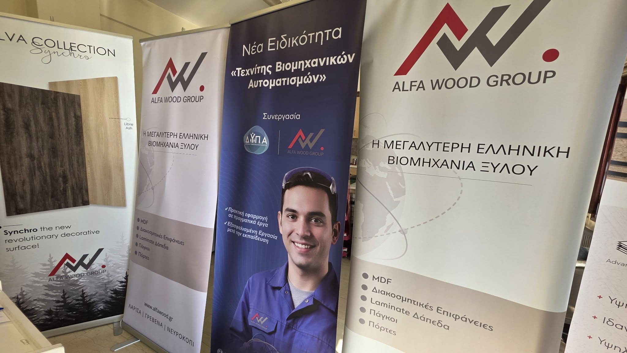 Παρουσία της Υπουργού Εργασίας και Κοινωνικής Ασφάλισης Νίκης Κεραμέως, της Διοικήτριας της Δημόσιας Υπηρεσίας Απασχόλησης (ΔΥΠΑ) Γιάννα Χορμόβα, και του Προέδρου και Διευθύνων Σύμβουλου του Ομίλου ALFA WOOD GROUP Βασίλη Αδαμόπουλου, πραγματοποιήθηκε την Πέμπτη 23 Οκτωβρίου, η εκδήλωση εγκαινίων του νέου παραρτήματος της Επαγγελματικής Σχολής (ΕΠΑΣ) Μαθητείας Λάρισας της ΔΥΠΑ στις εγκαταστάσεις του Ομίλου στα Γρεβενά, με αφορμή την έναρξη λειτουργίας της Σχολής Μαθητείας για τη νέα ειδικότητα: «Τεχνίτης Βιομηχανικών Αυτοματισμών»,
