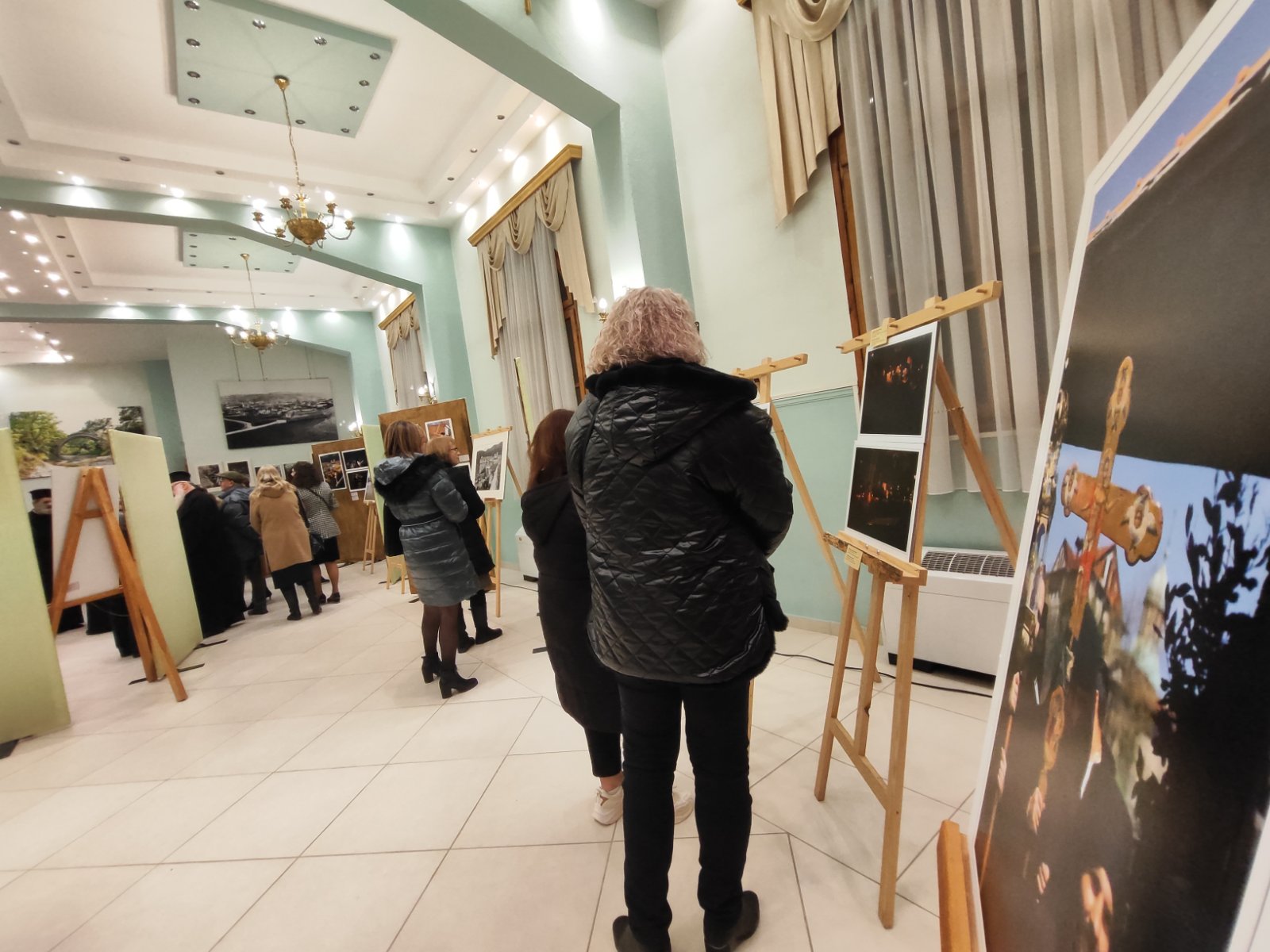 Τον αγιασμό της έναρξης της έκθεσης τέλεσε ο Σεβασμιώτατος Ποιμενάρχης μας, πλαισιούμενος από τον ομιλητή του Κατανυκτικού Εσπερινού, Γέροντας Νεκτάριος Μουλατσιώτης, καθώς και τον Διευθυντή της Αγιορειτική Εστία, κ. Αναστάσιο Ντούρο.