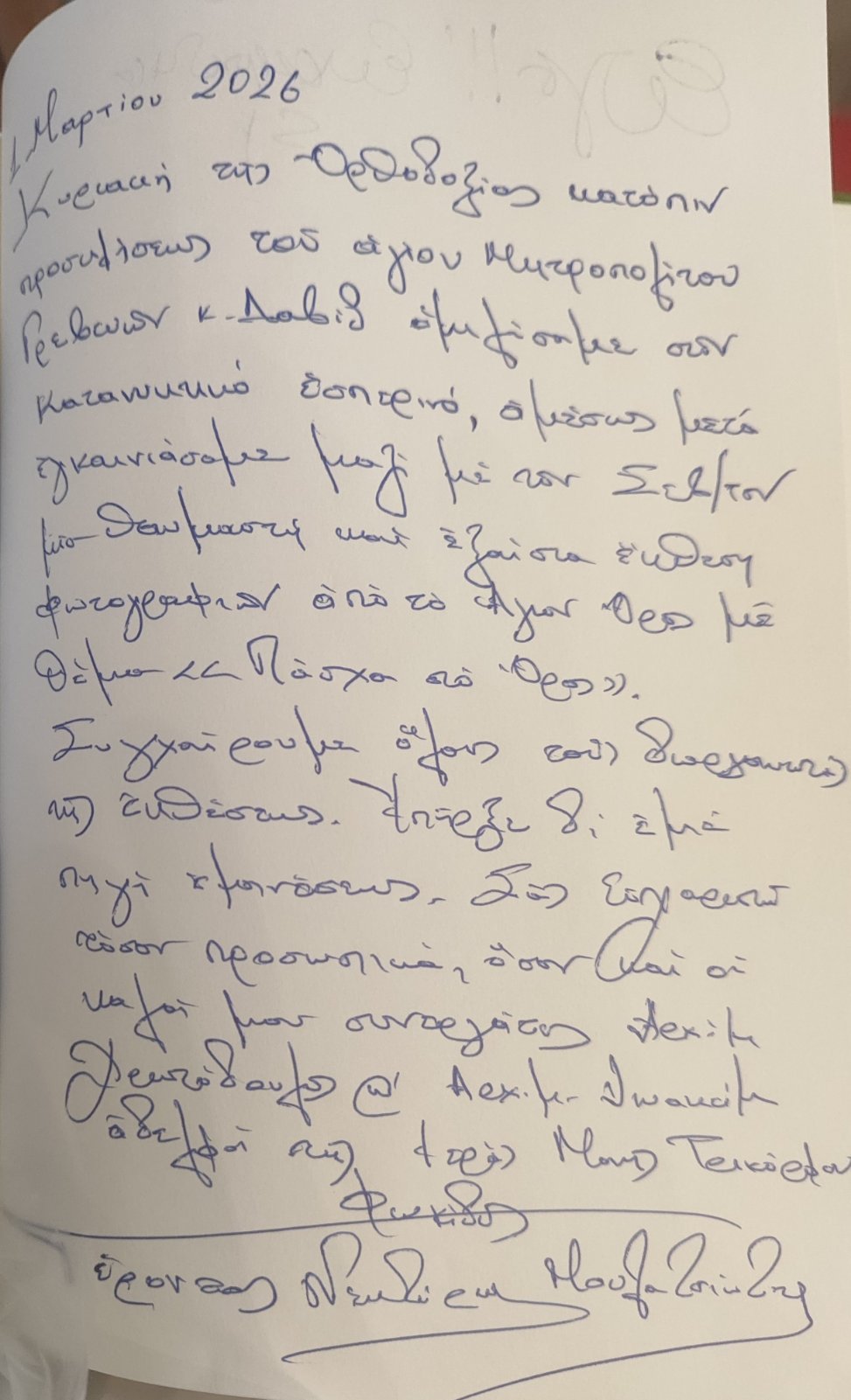 Παρόν στον αγιασμό ήταν και ο Δήμαρχος Γρεβενών, ο οποίος με θερμό χαιρετισμό καλωσόρισε για ακόμη μία φορά την έκθεση στην πόλη, εκφράζοντας παράλληλα την επιθυμία του να επισκεφθεί στο μέλλον το Άγιον Όρος, ώστε να γνωρίσει από κοντά όσα προβάλλονται μέσα από τις εκθέσεις της Αγιορειτικής Εστίας. Η έκθεση «Πάσχα στο Άγιον Όρος» προσφέρει στους επισκέπτες μια μοναδική ευκαιρία να γνωρίσουν τη βαθιά πνευματικότητα, την κατανυκτική ατμόσφαιρα και την αναστάσιμη χαρά της αγιορειτικής παράδοσης, όπως αυτή βιώνεται στο Περιβόλι της Παναγίας.
