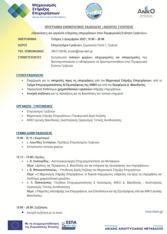 ΕΝΗΜΕΡΩΤΙΚΗ ΕΚΔΗΛΩΣΗ Μηχανισμός Στήριξης Επιχειρήσεων | Επιμελητήριο Γρεβενών | ΑΝΚΟ