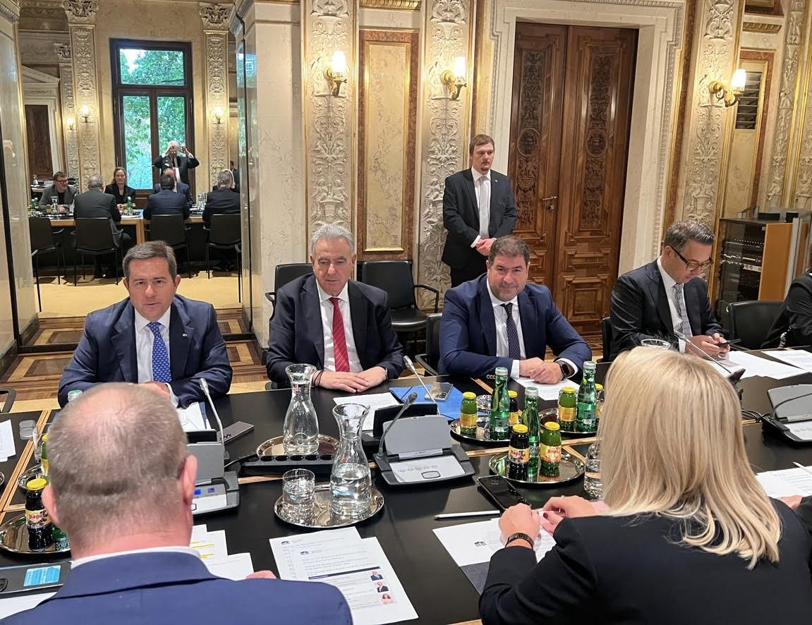 Μεταξύ άλλων, συναντήθηκαν με τον Πρόεδρο του Αυστριακού Κοινοβουλίου Dr. Walter Rosenkranz, όπου συζητήθηκαν οι προοπτικές ενίσχυσης της κοινοβουλευτικής συνεργασίας. Ιδιαίτερα γόνιμη ήταν και η συνάντηση με τον Ομοσπονδιακό Υπουργό Εσωτερικών της Αυστρίας κ. Gerhard Karner, με επίκεντρο το μεταναστευτικό, την ανάγκη αποτελεσματικής φύλαξης των εξωτερικών συνόρων και τη δίκαιη κατανομή υποχρεώσεων στα κράτη–μέλη της Ε.Ε.