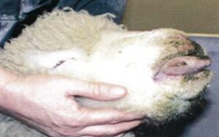Πρόβατο με βλεννοπυώδες ρινικό έκκριμα που φράσσει τους μυκτήρες