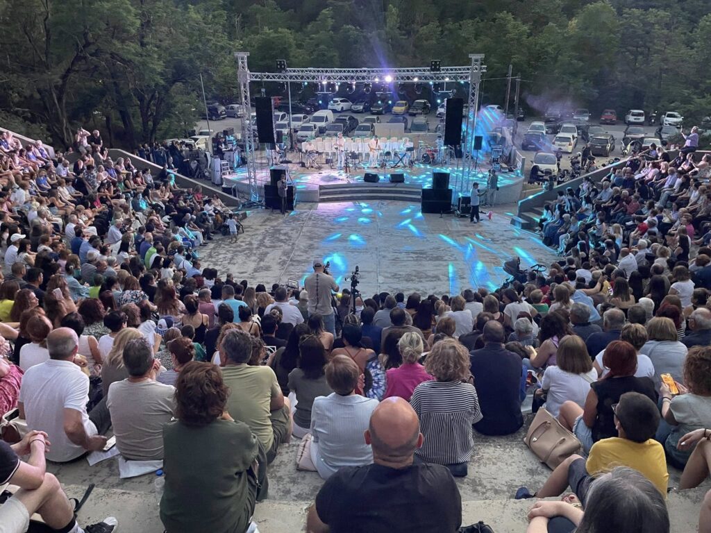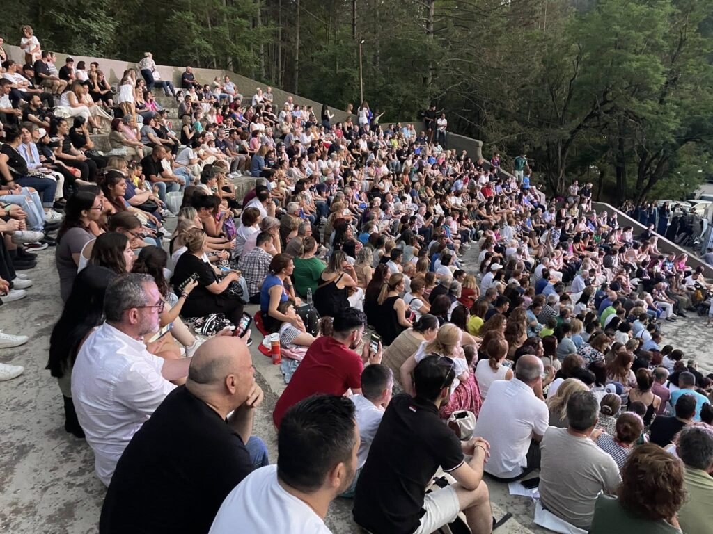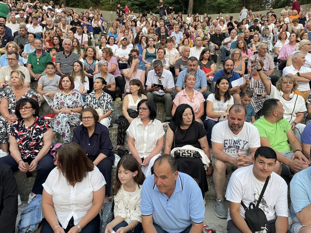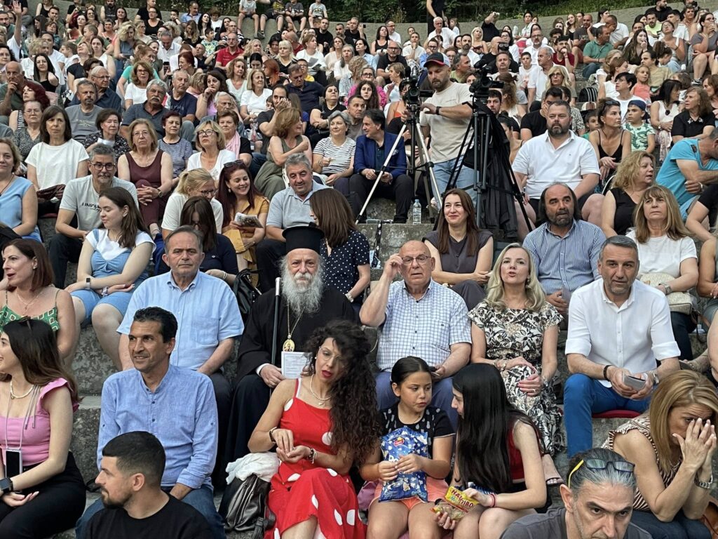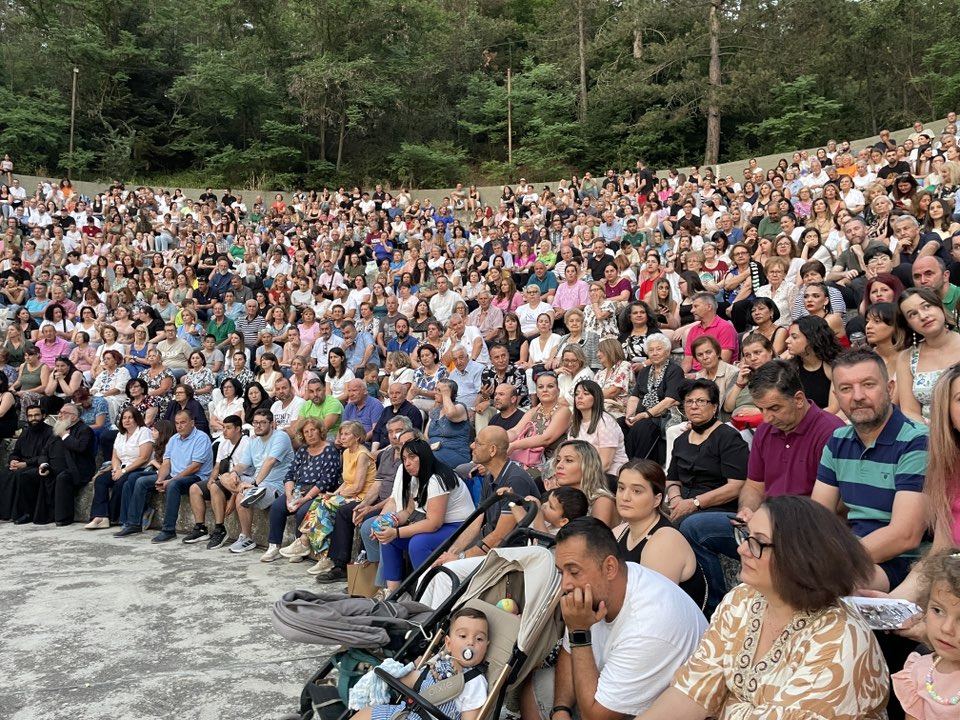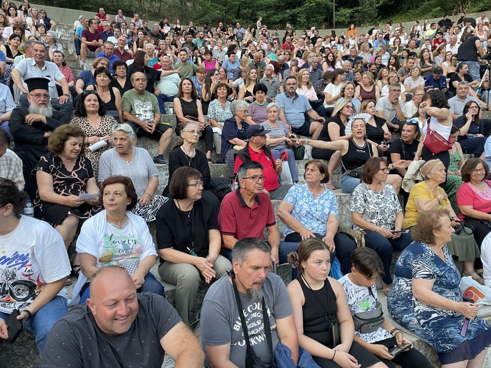 Το κοινό κατέκλυσε το θέατρο, απολαμβάνοντας τους Κωνσταντίνο και Ματθαίο Τσαχουρίδη και τις χορωδίες της Ιεράς Μητροπόλεως Γρεβενών (Παιδική & Μεικτή), υπό τη διεύθυνση των Οδυσσέα Τάσιου και Φωτεινής Γκιουλέκα.
