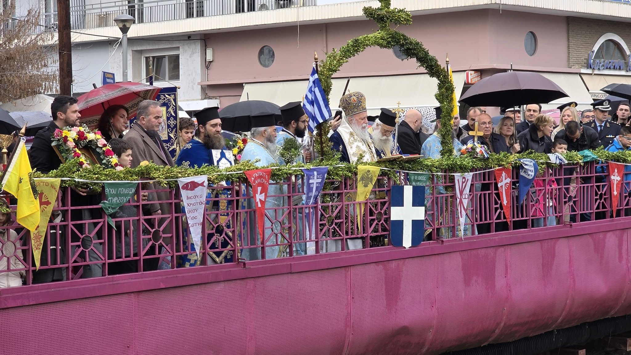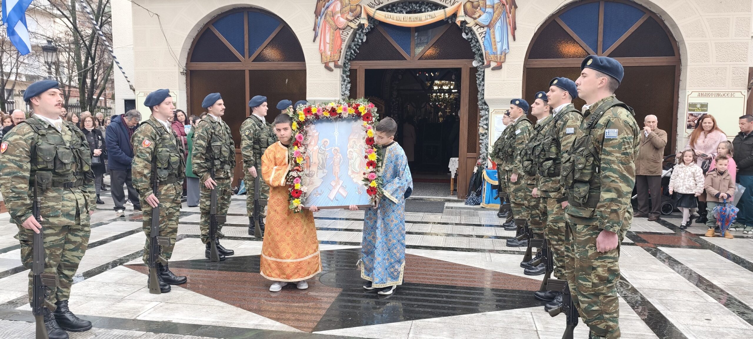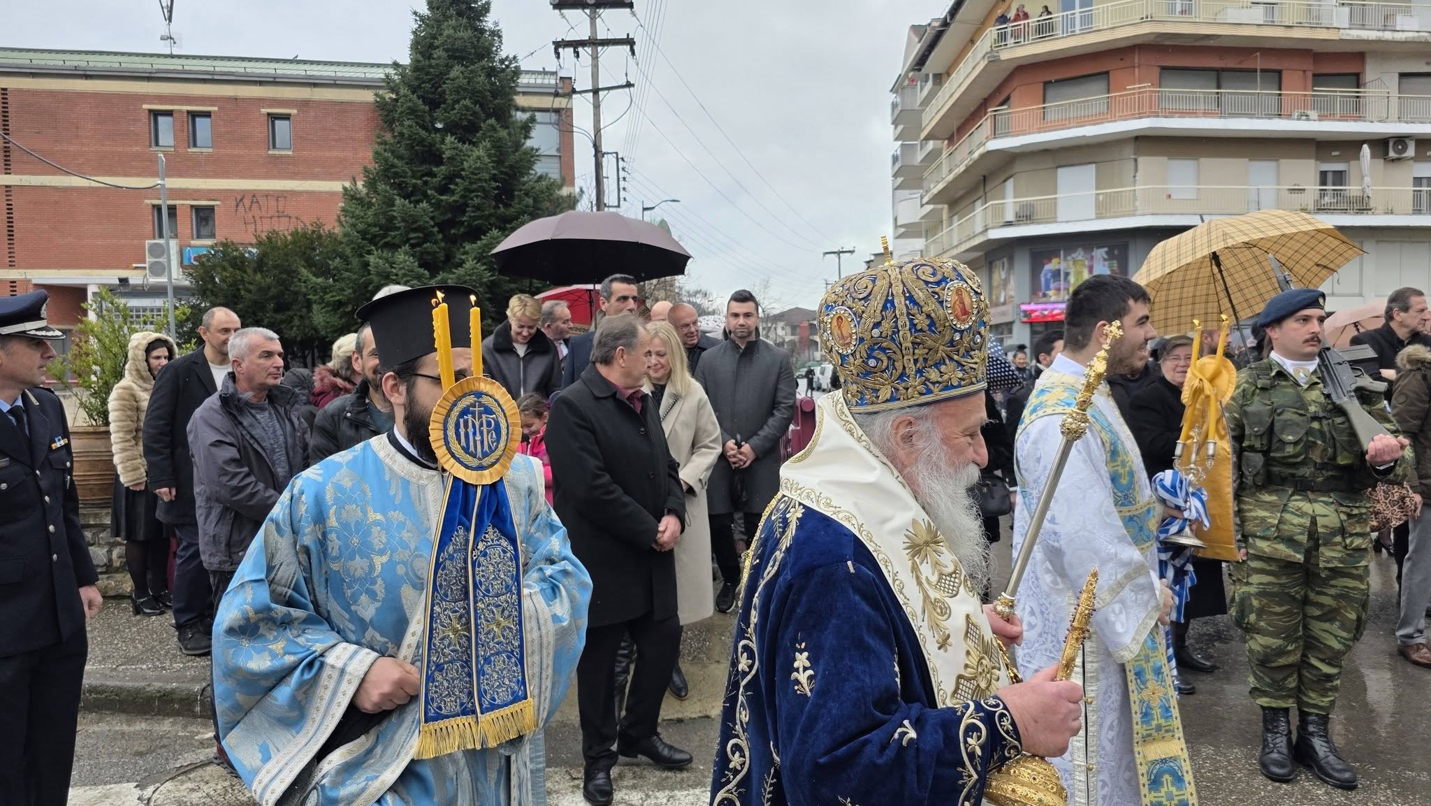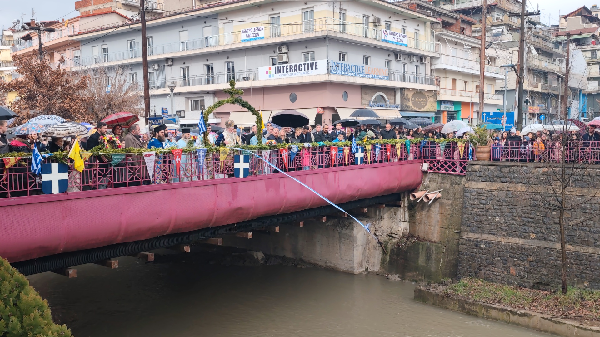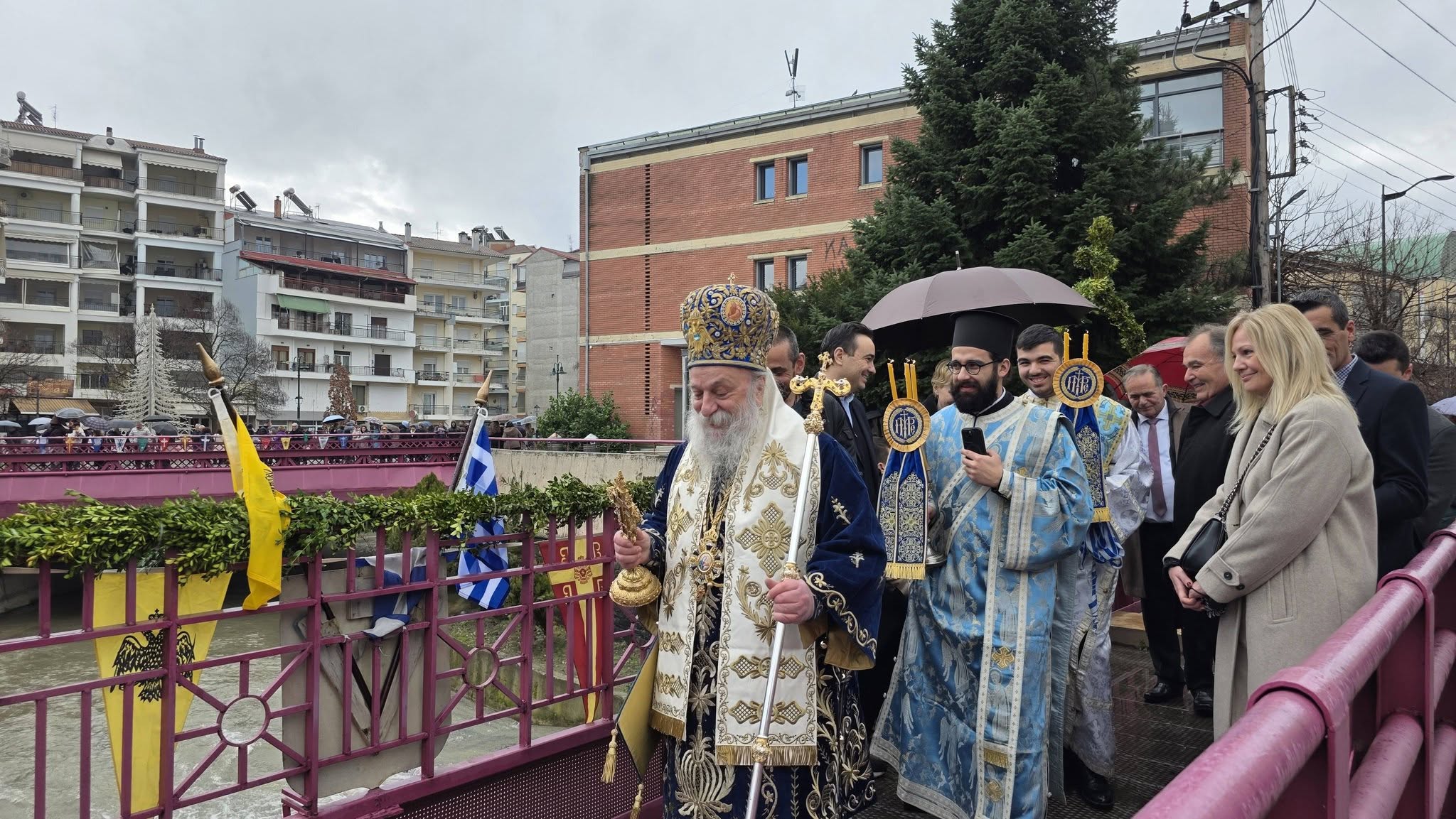 Με λαμπρότητα κι επισημότητα, Χοροστατούντος του μητροπολίτη Γρεβενών κ. Δαβίδ και παρουσία των αρχών της πόλης αλλά και πλήθος κόσμου, τελέσθηκε η Ακολουθία του Μεγάλου Αγιασμού στον Ιερό Ναό Ευαγγελιστρίας και εν συνεχεία έγινε η ρίψη του Τιμίου Σταυρού στον Γρεβενίτη ποταμό.