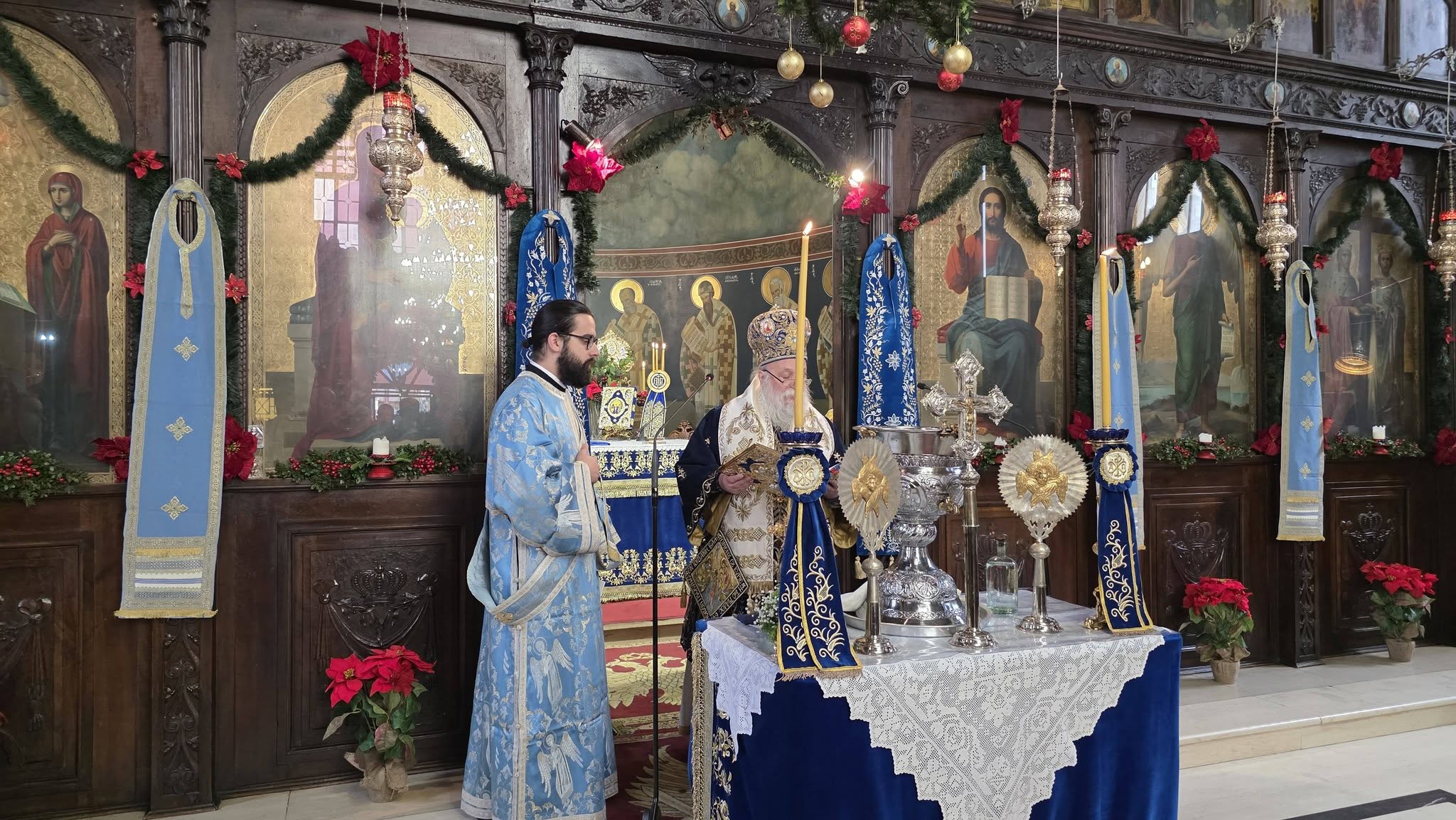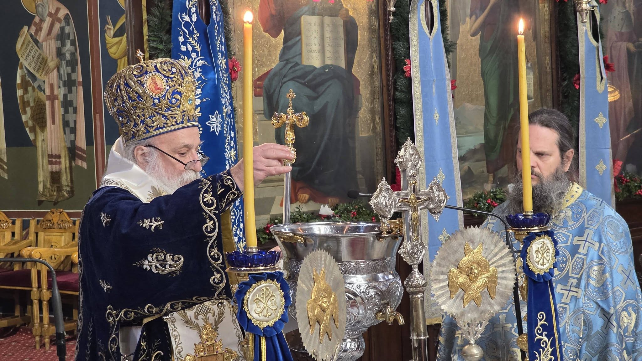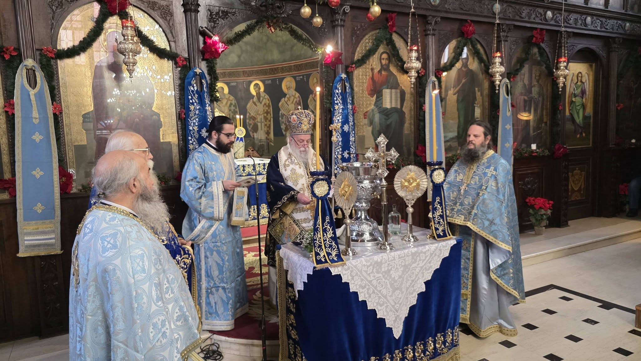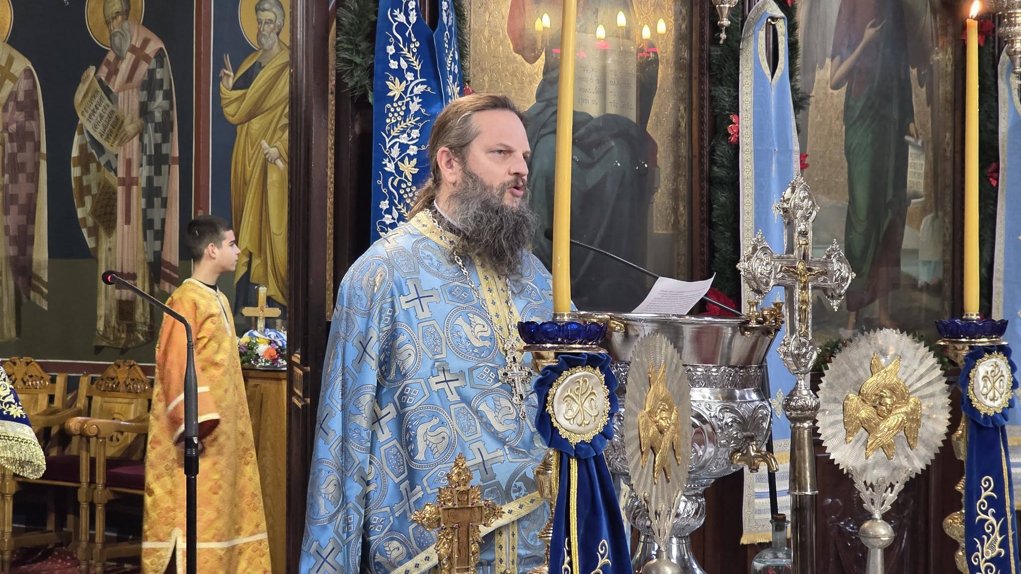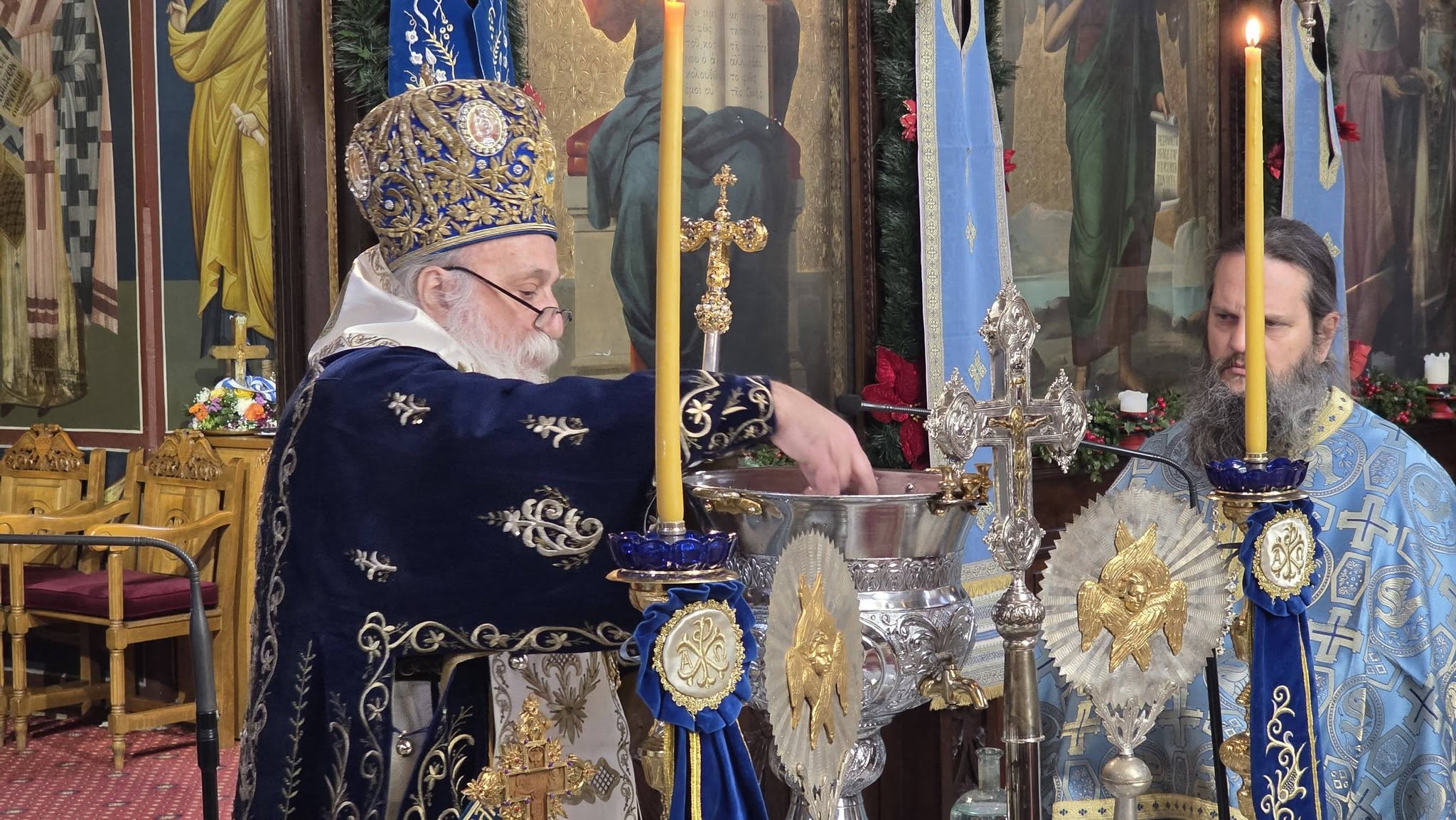 Με λαμπρότητα κι επισημότητα, Χοροστατούντος του μητροπολίτη Γρεβενών κ. Δαβίδ και παρουσία των αρχών της πόλης αλλά και πλήθος κόσμου, τελέσθηκε η Ακολουθία του Μεγάλου Αγιασμού στον Ιερό Ναό Ευαγγελιστρίας και εν συνεχεία έγινε η ρίψη του Τιμίου Σταυρού στον Γρεβενίτη ποταμό.