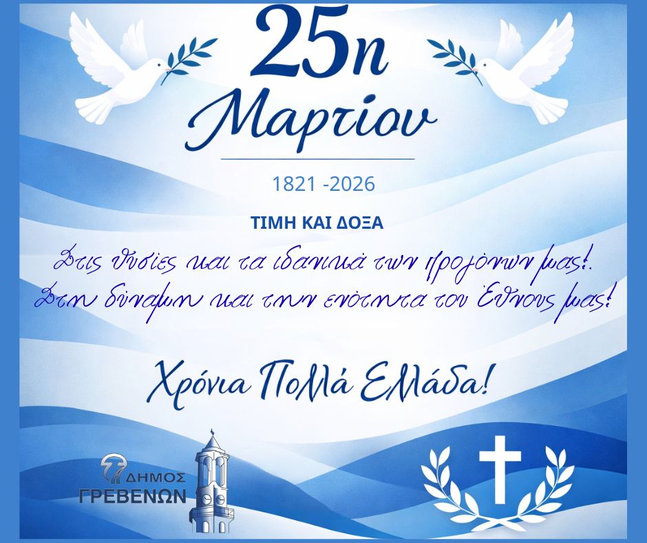 Μήνυμα του Δημάρχου Γρεβενών, Κυριάκου Ταταρίδη για την 25η Μαρτίου.
