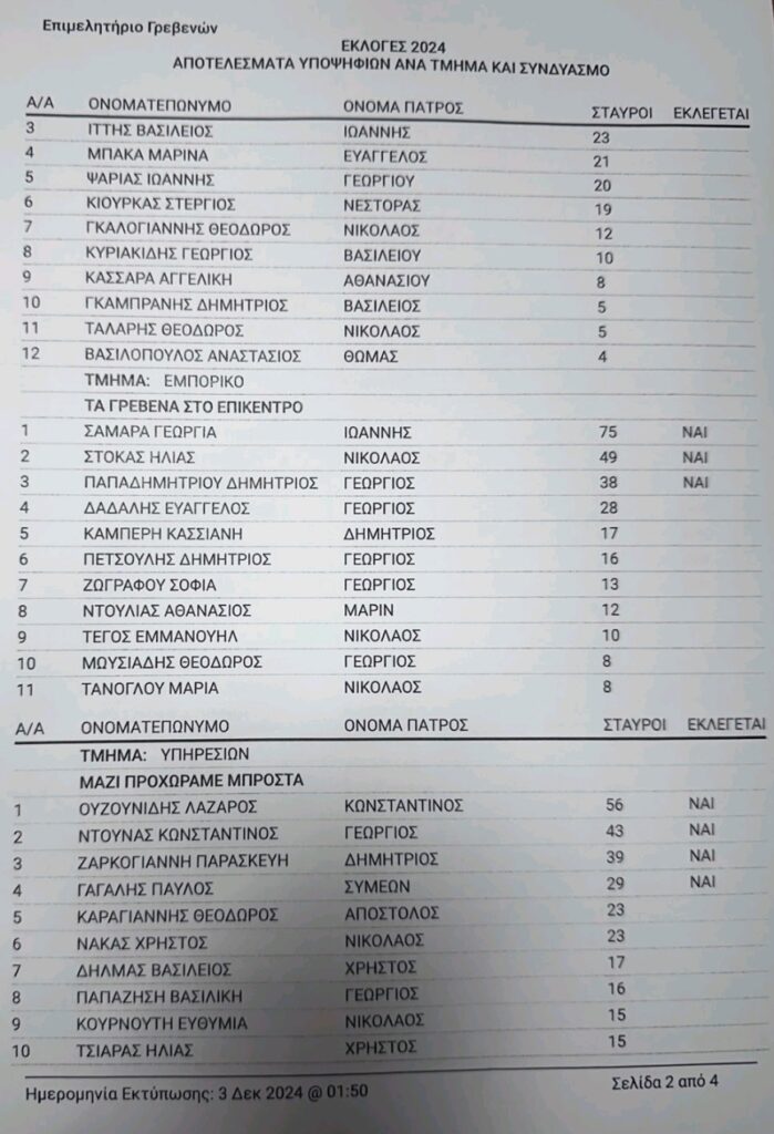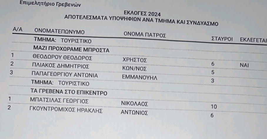 τα ανεπίσημα αποτελέσματα ανα τμήμα:
