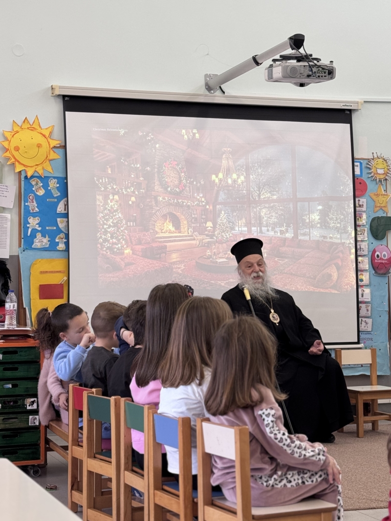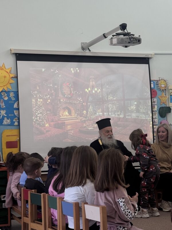 Η επίσκεψη πραγματοποιήθηκε μέσα σε κλίμα συγκίνησης και παιδικής αγνότητας, καθώς τα μικρά παιδιά υποδέχθηκαν τον Σεβασμιώτατο με χαρά και ενθουσιασμό, ψάλλοντας χριστουγεννιάτικα κάλαντα, προσφέροντάς του ένα ζεστό μήνυμα αγάπης και χαράς ενόψει των εορτών.