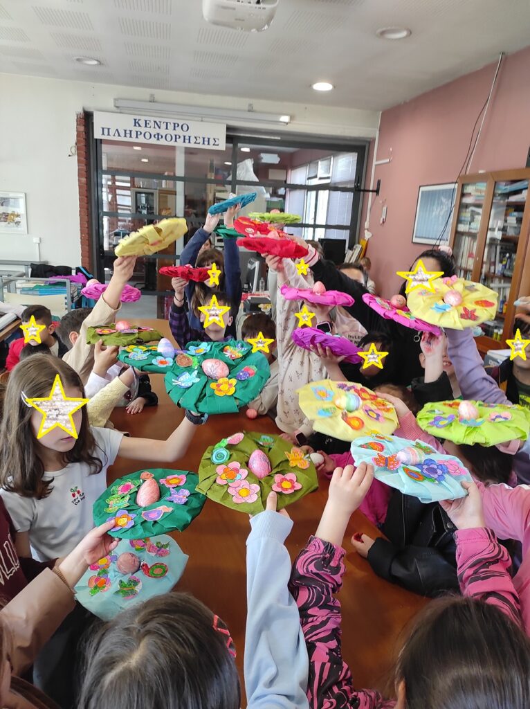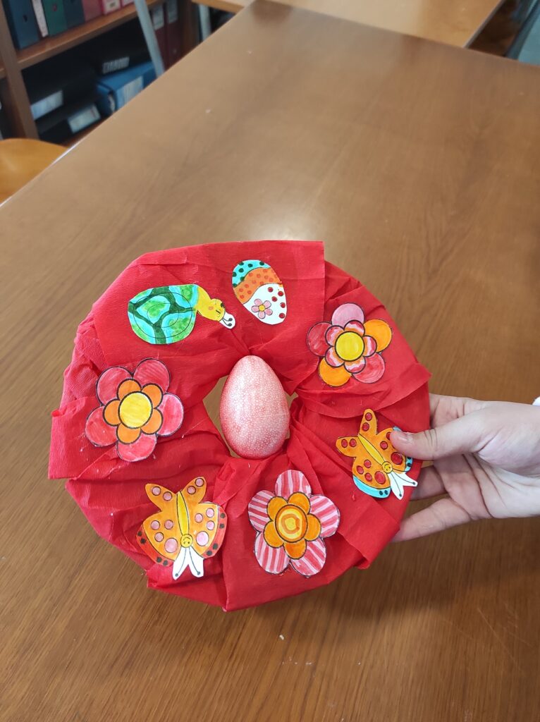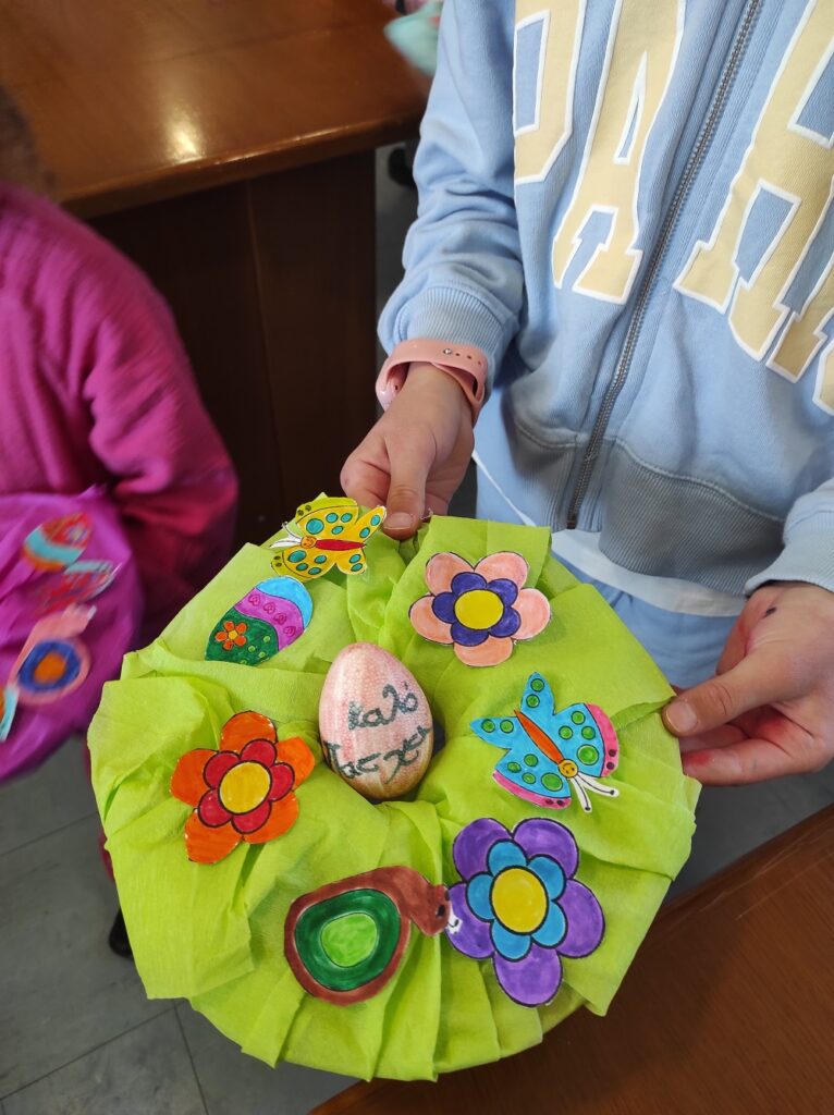 Στο δεύτερο σκέλος της δράσης μας τα παιδιά κλήθηκαν να δημιουργήσουν το δικό τους στεφανάκι με ζωηρά ανοιξιάτικά χρώματα. Το διακόσμησαν με άνθη, πεταλούδες, σαλιγκάρια τιμώντας έτσι το Πάσχα που είναι η γιορτή της άνοιξης και της ζωής. Στη συνέχεια διακόσμησαν το δικό τους πασχαλινό αυγό και το τοποθέτησαν και αυτό πάνω στο στεφανάκι τους! Το πολύχρωμο αποτέλεσμα μας χαροποίησε όλους πολύ και ευχαριστούμε από καρδιάς τα παιδιά που συμμετείχαν, ο ενθουσιασμός και η δημιουργική τους διάθεση είναι έμπνευση για όλους εμάς και μας ωθεί στην πραγματοποίηση περισσότερων δράσεων.