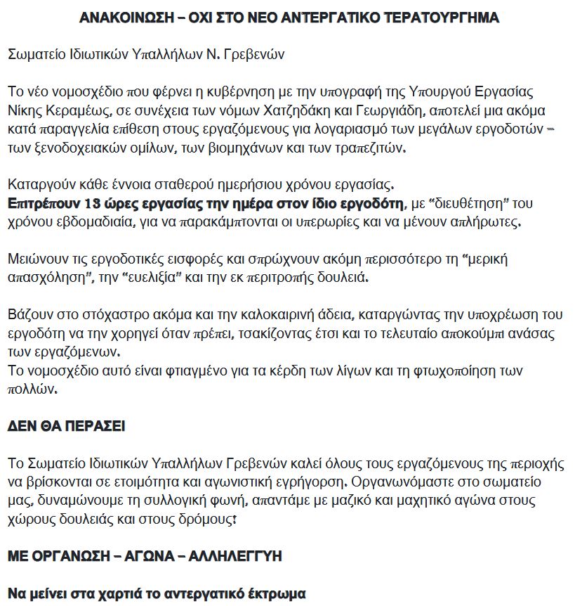 Γρεβενά ΣΩΜΑΤΕΙΟ ΙΔΙΩΤΙΚΩΝ ΥΠΑΛΛΗΛΩΝ Ν.ΓΡΕΒΕΝΩΝ: ΟΧΙ ΣΤΟ ΝΕΟ ΑΝΤΕΡΓΑΤΙΚΟ ΤΕΡΑΤΟΥΡΓΗΜΑ 06/07/2025 - 19:15