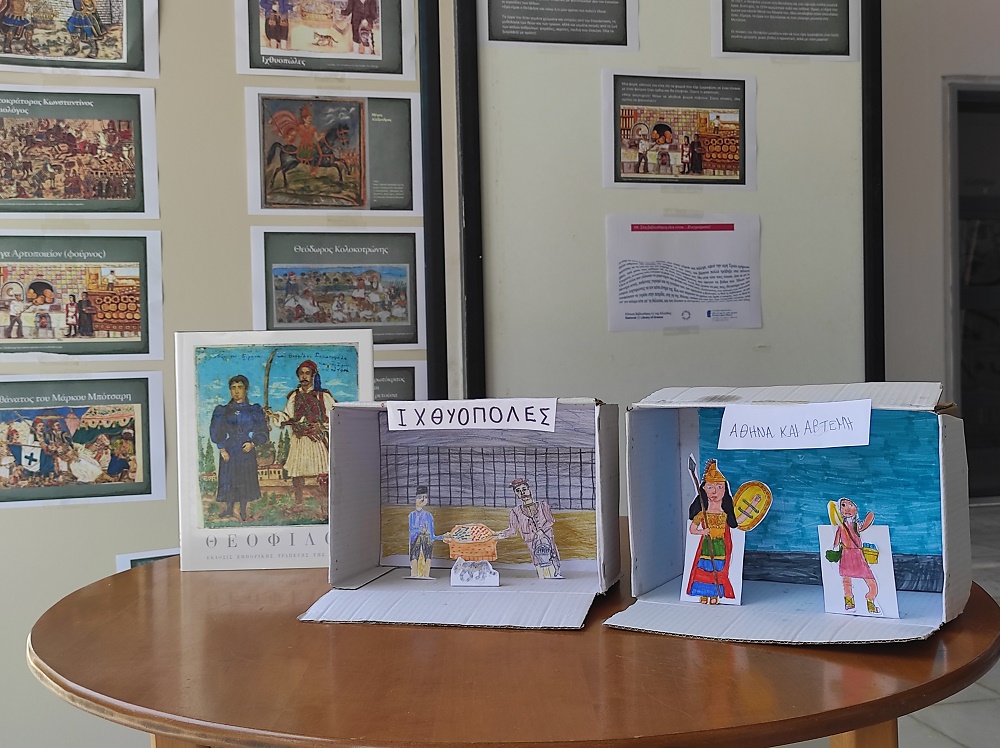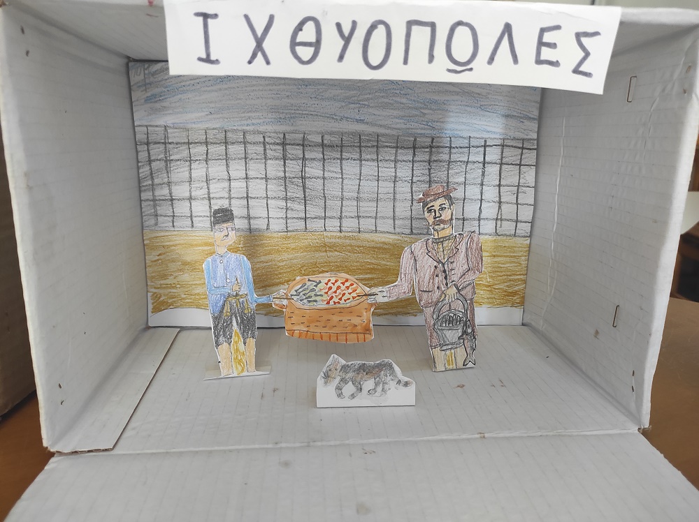 Ακολούθησε το μοίρασμα των παιδιών σε πέντε ομάδες όπου σε κάθε ομάδα μοιράστηκε ένα κουτί. Η κάθε ομάδα διάλεξε έναν πίνακα του Θεόφιλου και τον μετέφερε στο κουτί με χάρτινες φιγούρες δημιουργώντας ένα σκηνικό θεάτρου. Στο τέλος παρουσίασαν το έργο του εξηγώντας γιατί το διάλεξαν. Καταχειροκροτήθηκαν γατί πραγματικά όλα τα έργα τους ήταν πολύ όμορφα!