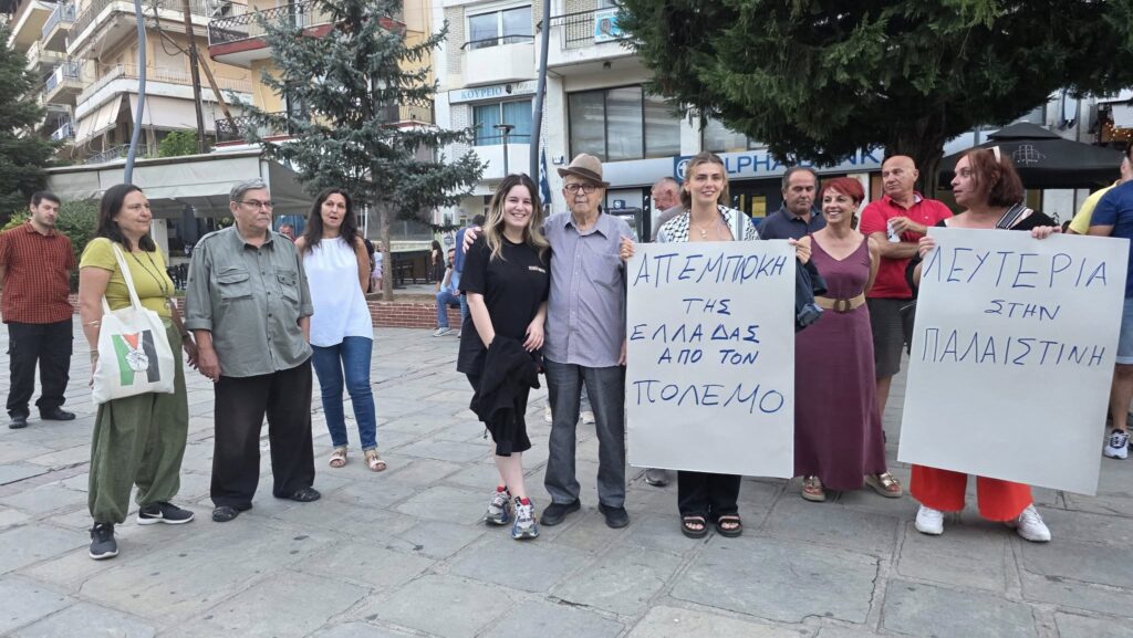 Συγκέντρωση πραγματοποιήθηκε σήμερα στην κεντρική πλατεία των Γρεβενών, με κύριο μήνυμα το τέλος της γενοκτονίας του Παλαιστινιακού λαού.