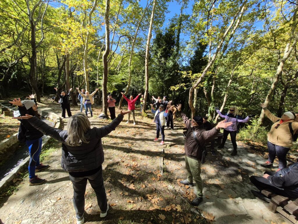 Ιδιαίτερη έμφαση δόθηκε στη δασοθεραπεία και στο “δασικό μπάνιο” (forestbathing) – μια ήπια, βιωματική πρακτική επαφής με το δάσος, η οποία συμβάλλει στη μείωση του άγχους, την ενίσχυση της ψυχικής υγείας και τη σύνδεση με το φυσικό περιβάλλον.