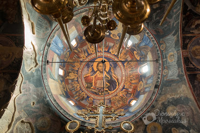 Ο τρούλος της εκκλησίας στηρίζεται σε τέσσερις τετράγωνους πεσσούς.