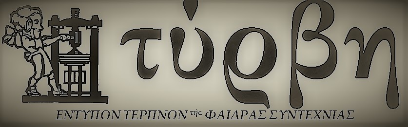 Η -από άποψη περιεχομένου και τυπογραφικής αισθητικής- περικαλλής “Τύρβη”, είναι ένας άλλος καρπός των δεσμών αυτή τη φορά του Αντώνη Παπαβασιλείου με τον εκ Λευκοπηγής Κοζάνης ακούραστο συγγραφέα, ποιητή και εκδότη Β.Π. Καραγιάννη.